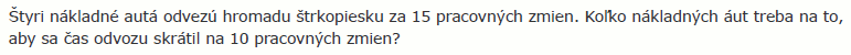 Trojčlenka a slovné úlohyTeória![]() Príklad č.1![]() Príklad č.2![]() Príklad č.3![]() Príklad č.4![]() Príklad č.5![]() Príklad č.6![]() Príklad č.7![]() Príklad č.8![]() Príklad č.9![]() |